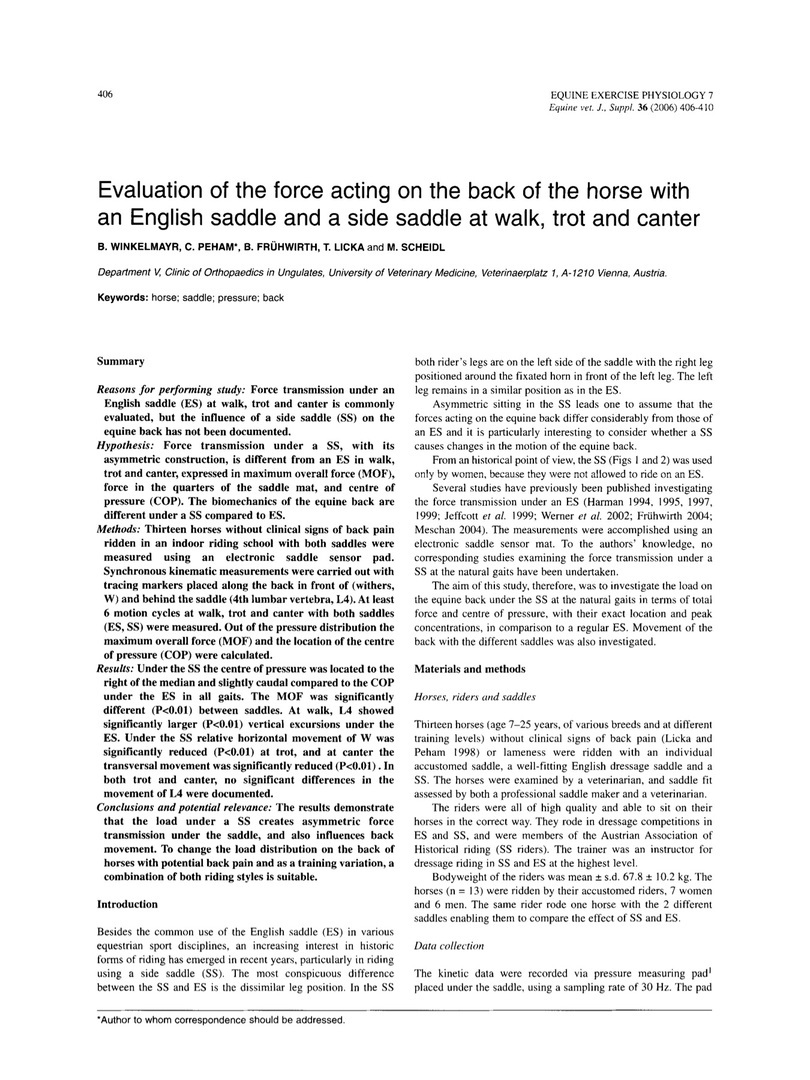 1998 wurde auf der Veterinärmedizinischen Universität unter der Leitung von Professor Peham eine wissenschaftliche Studie durchgeführt. Der Schwerunkt lag bei der Messung der Auflagefläche